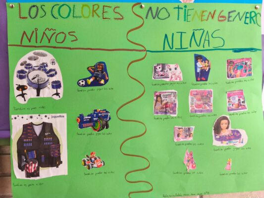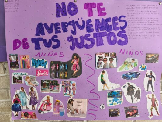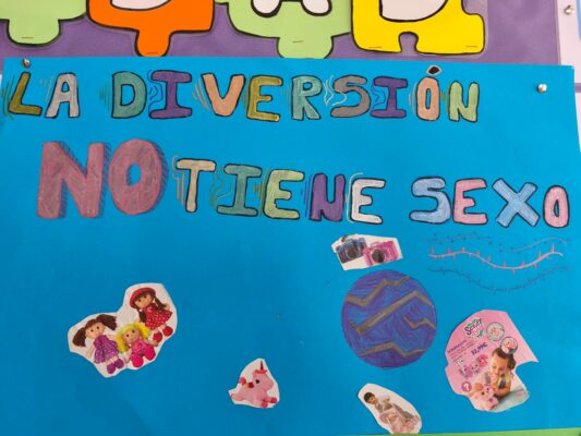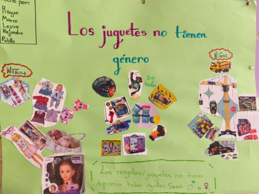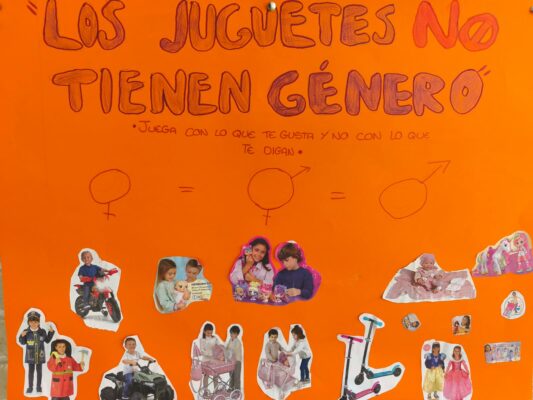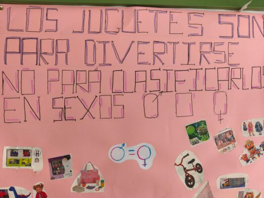 A través de la creación de estos coloridos murales, los niños y niñas del centro han lanzado mensajes tan importantes como que «los juguetes son para divertirse, no para clasificarlos por sexos» o que debemos «jugar con lo que nos gusta y no con lo que nos digan».