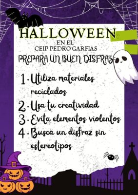 Desde los planes de Escuela Espacio de Paz, Igualdad y Biblioteca, os invitamos a disfrutar de esta fiesta promoviendo una convivencia sana. Por eso, este año lanzamos el reto: «Prepara un buen disfraz».